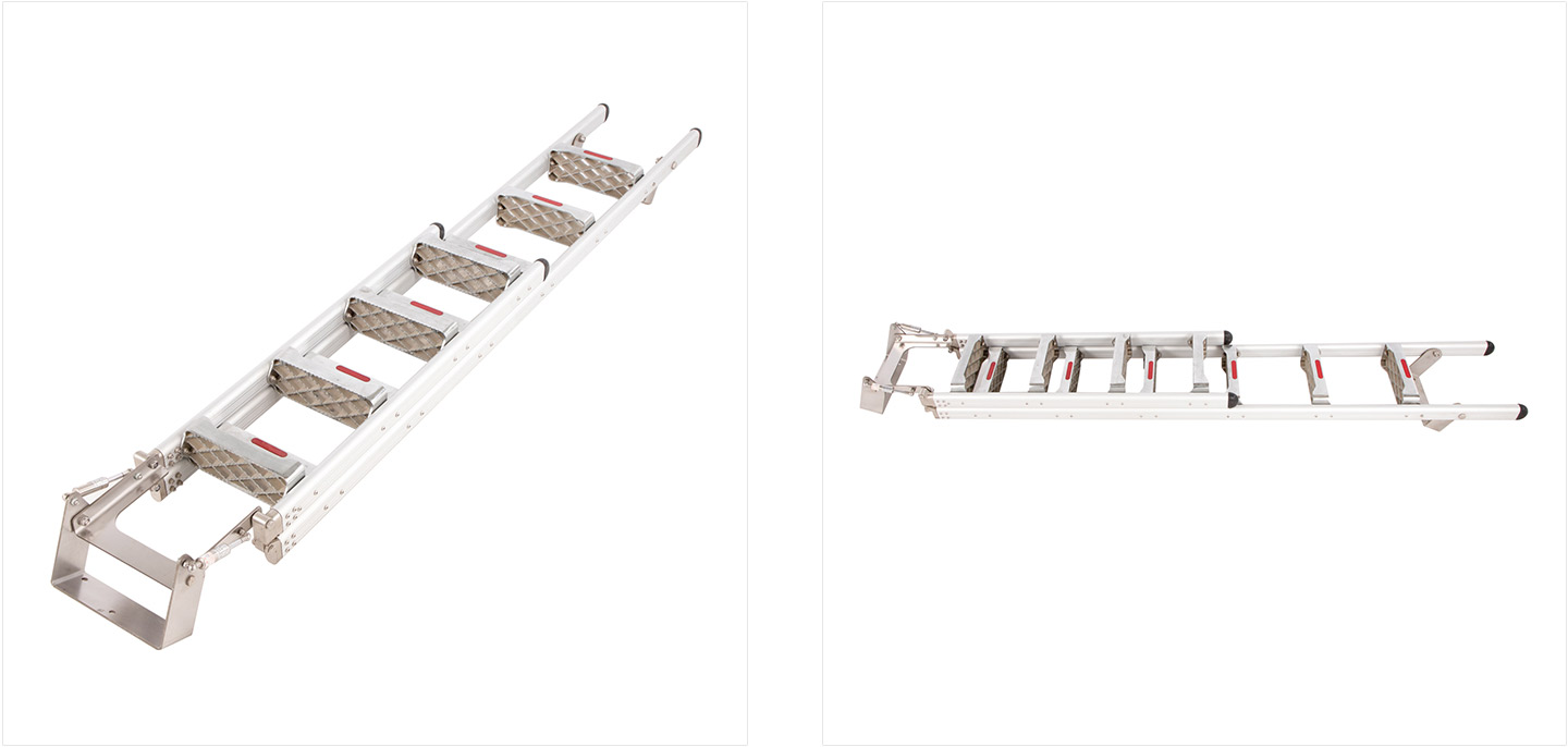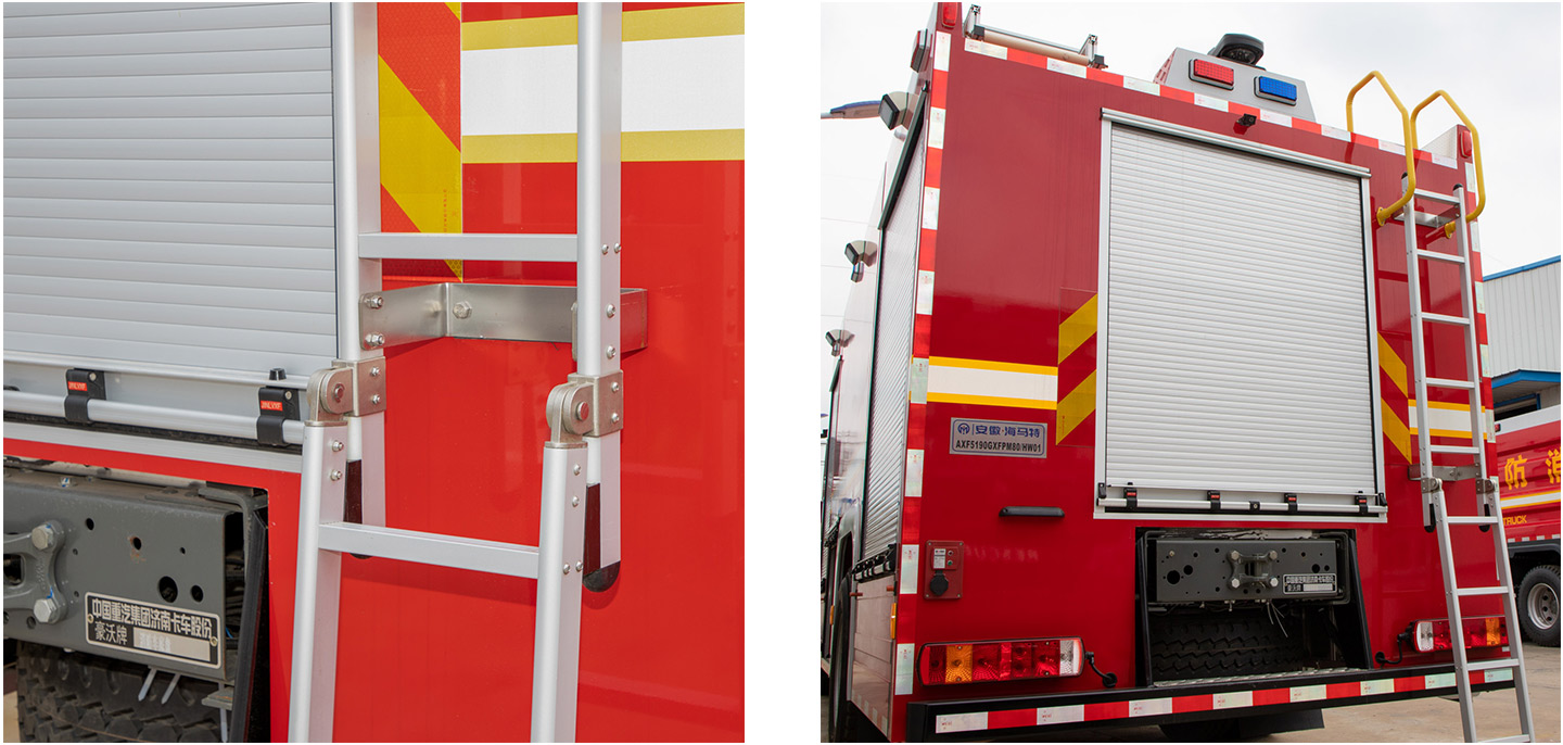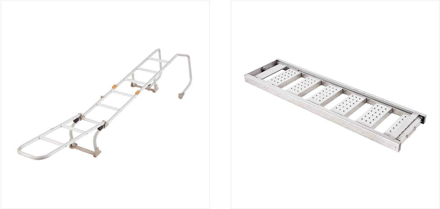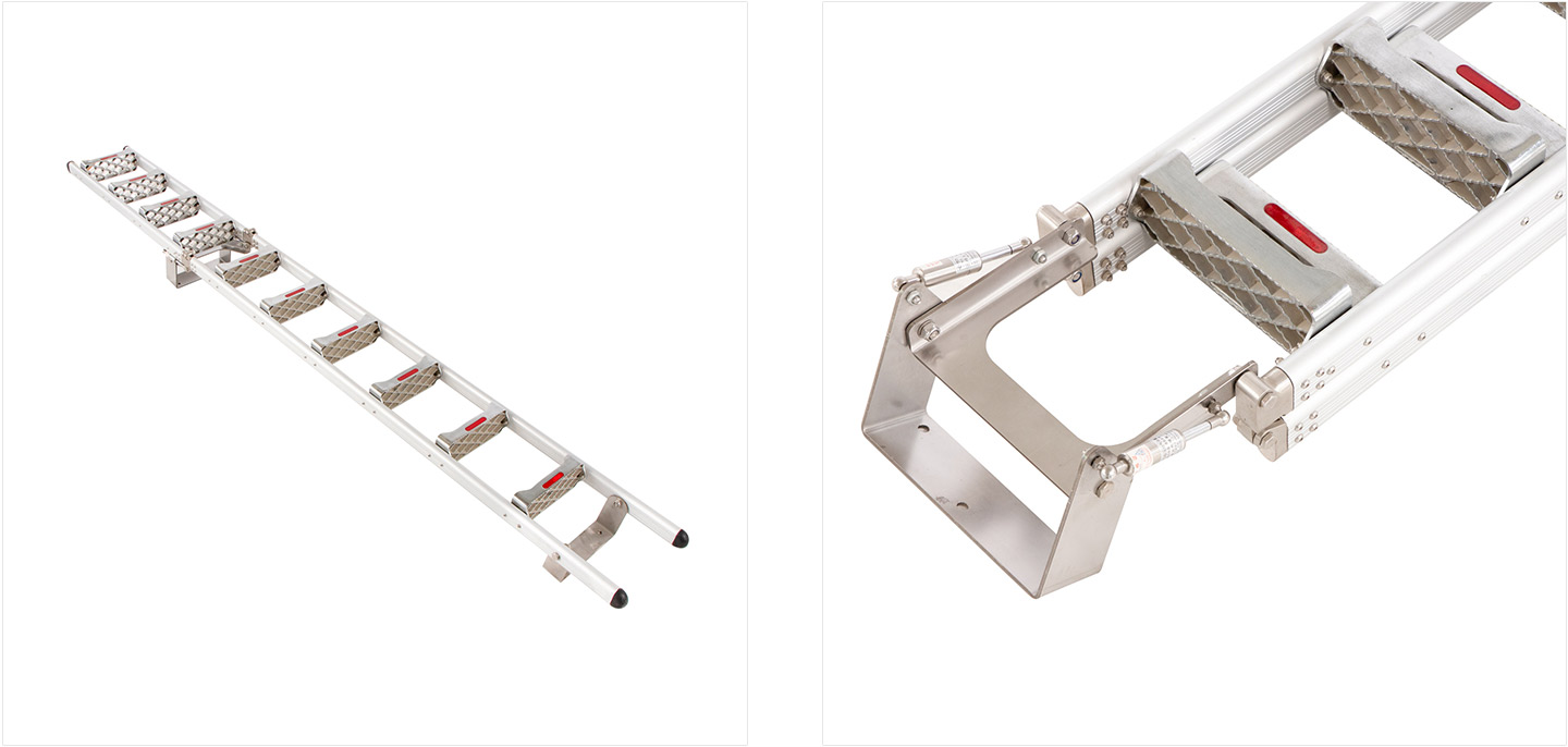 La escalera trasera del camión de bomberos se compone de dos columnas y una columna horizontal conectada a las dos columnas.El material se puede personalizar según los requisitos, principalmente fabricado en aluminio y tubos estampados.