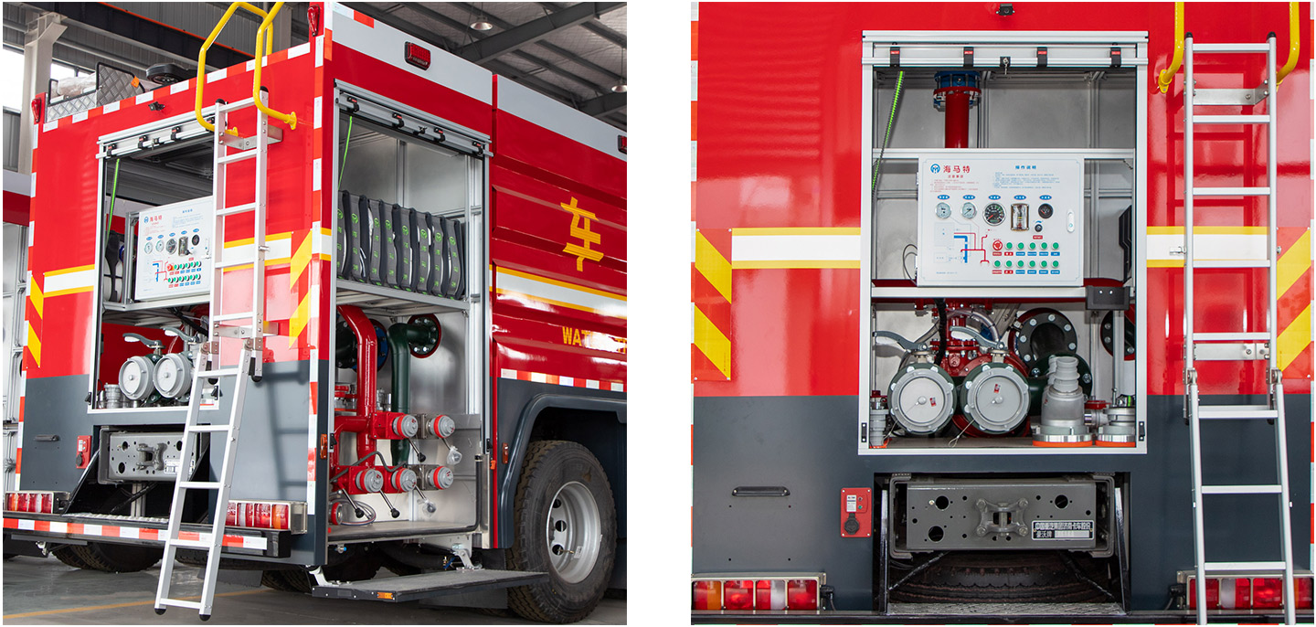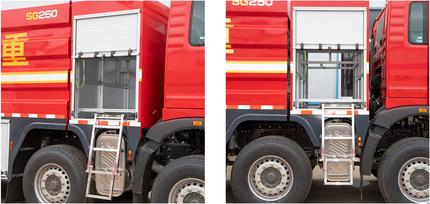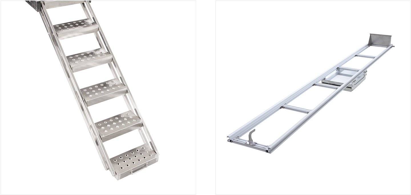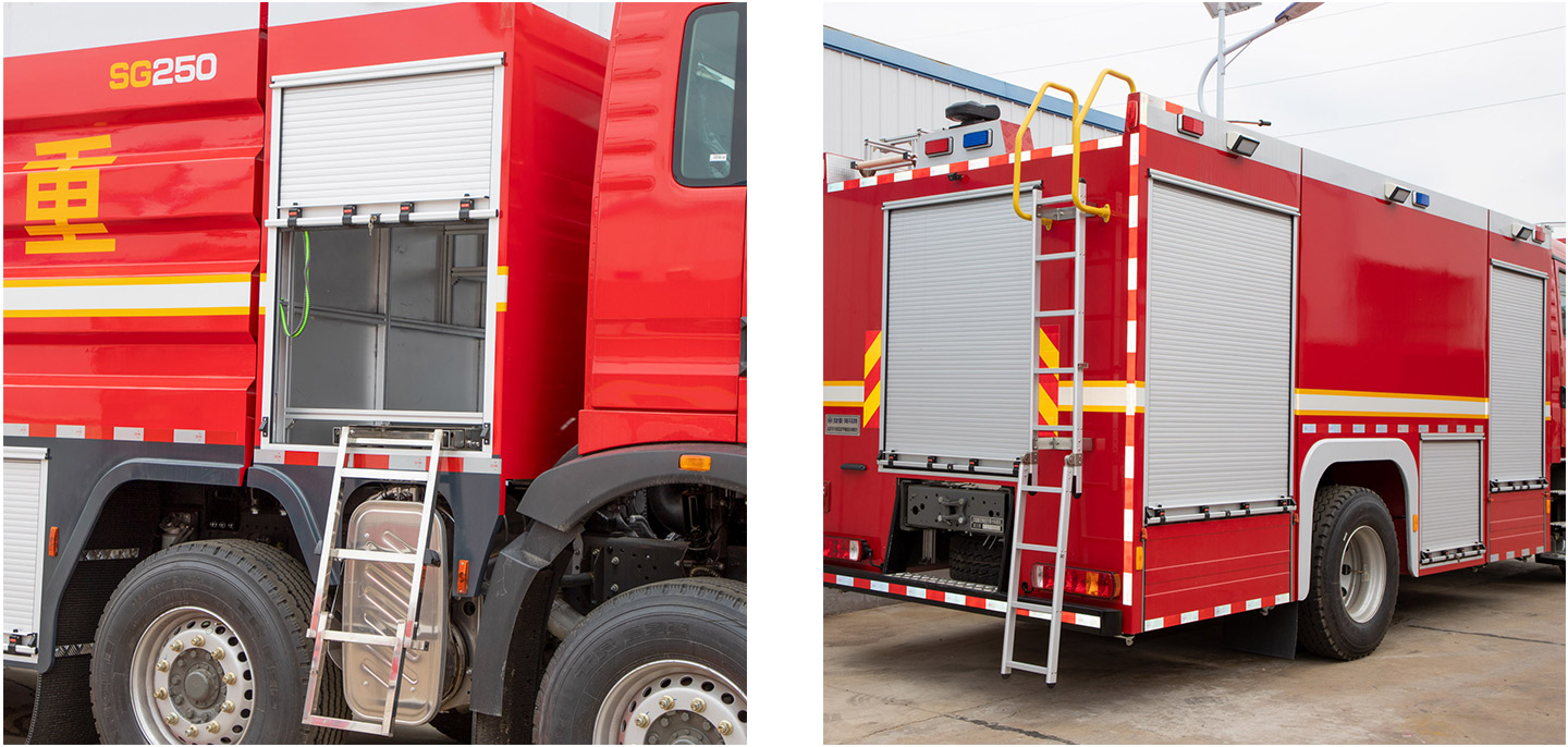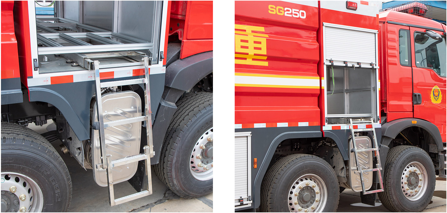 La escalera trasera del camión de bomberos se compone de dos columnas y una columna horizontal conectada a las dos columnas.El material se puede personalizar según los requisitos, principalmente fabricado en aluminio y tubos estampados.